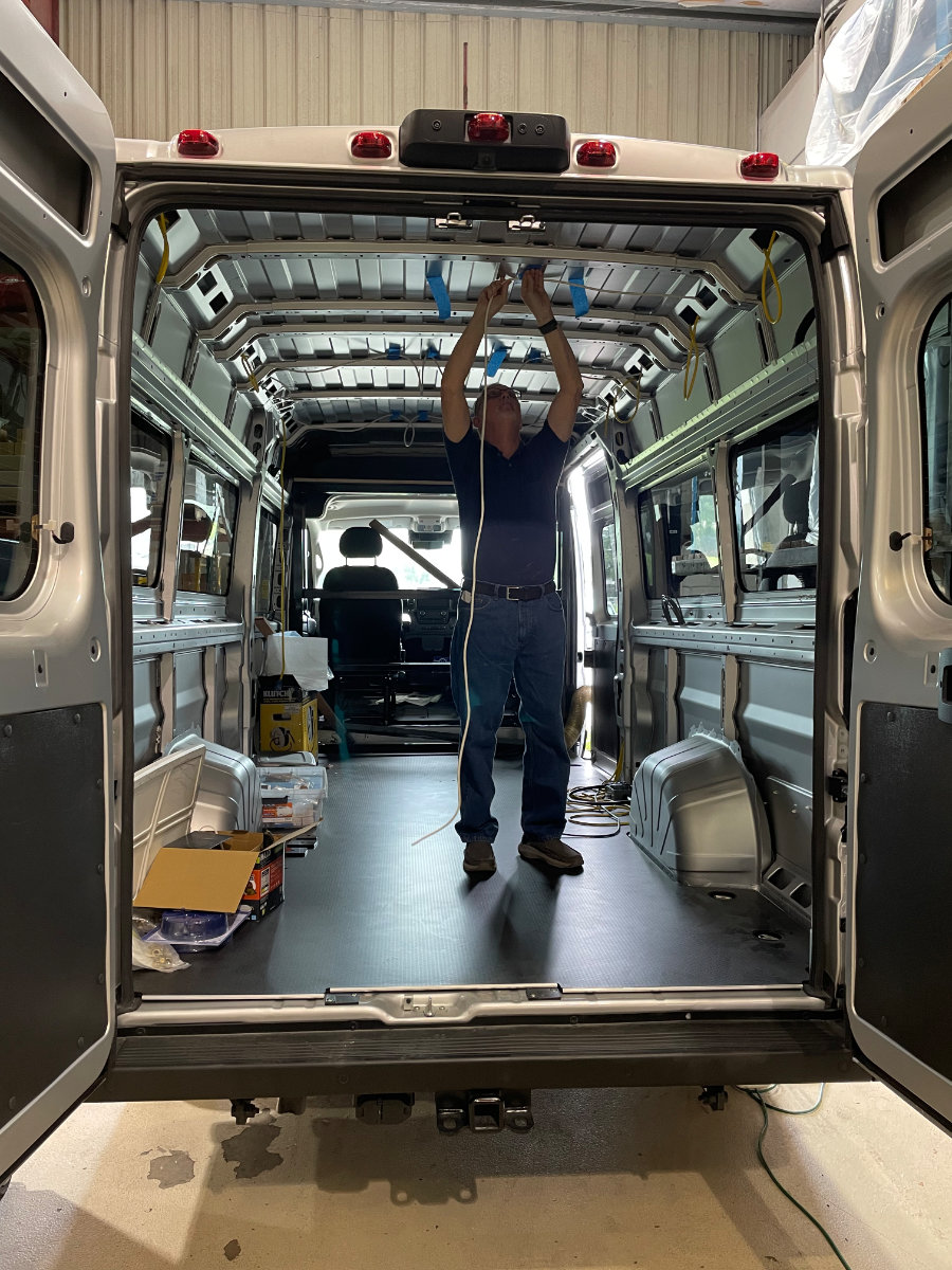 Someone, I don’t remember who, reminded me the other day that I have been customizing vans for fifty years. The first on was a 1973 Ford E100. I did all the work myself including the paint job. It included aftermarket AC (professionally installed). chrome side pipes, chrome reverse wheels with moon hub caps, white letter Dunlop tires, royal blue shag carpet everywhere inside with blue velvet curtains, a stereo out of a Cadillac and a DC refrigerator with an extra battery. Since then I have had a 1969 Chevy van, a 1993 Dodge B100, two 1998 E150s (still have one of them), three Dodge Sprinters and now three Ram ProMasters all customized to some extent. I have also had several minivans but they don’t count. Man fifty years is a long time.